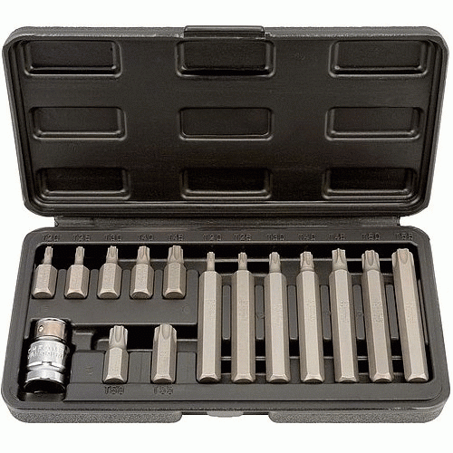 (6-лучевая звезда) с отверстием. Вставки (биты) изготовлены методом холодной штамповки. Сталь S2. Размер шестигранника-державки 10мм. Вес 650г. В комплекте: -держатель бит с присоединительным квадратом 1/2" -биты длина 30мм - т20, т25, т30, т40, т45, т50, т55 -биты длина75мм - т20, т25, т30, т40, т45, т50, т55 АналогиИнформация для оптовых покупателей